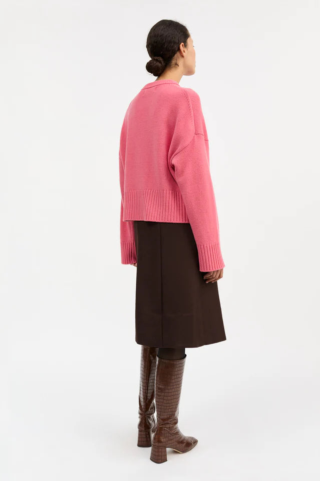 Campa jumper is an oversized knit made in exclusive merino wool. The knit has a round neck, dropped shoulders, rib in the bottom, and a boxy, cropped fit.