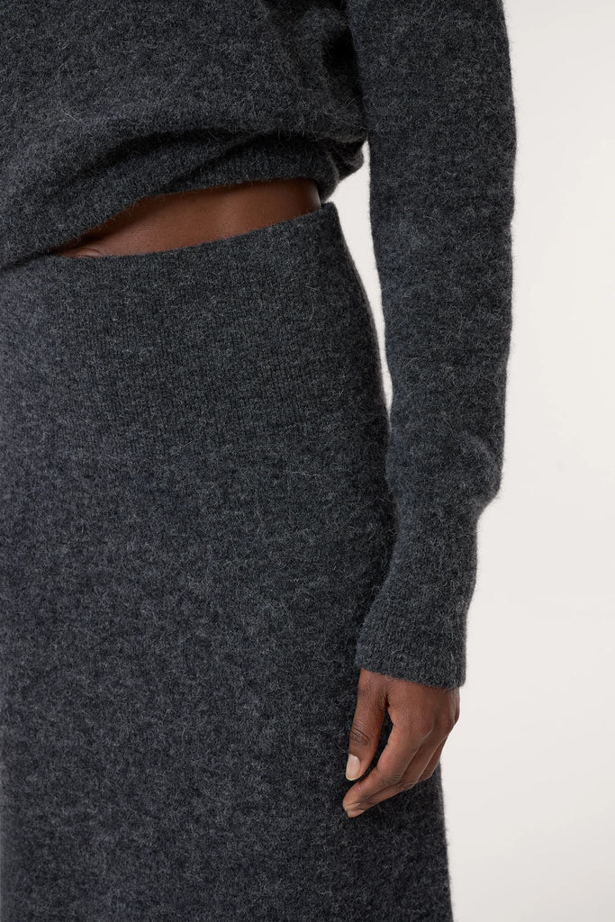 This knit skirt features a slim fit with a high waist and maxi length. Made from a stretchy alpaca-wool-mix yarn for structure and comfort, it has a centre back slit and an extra-high waist.