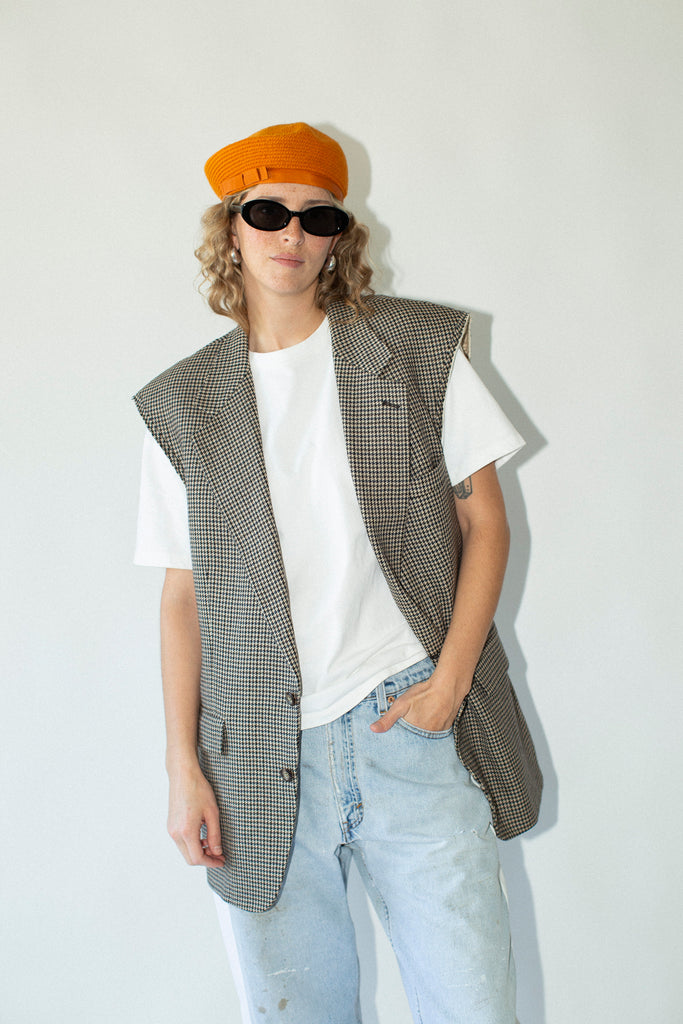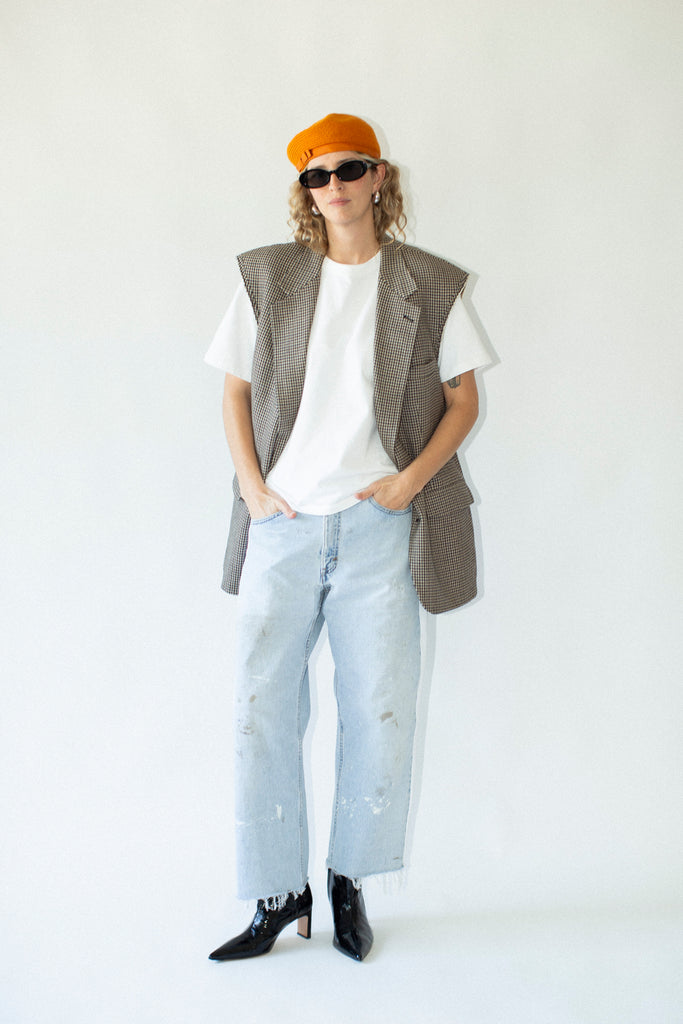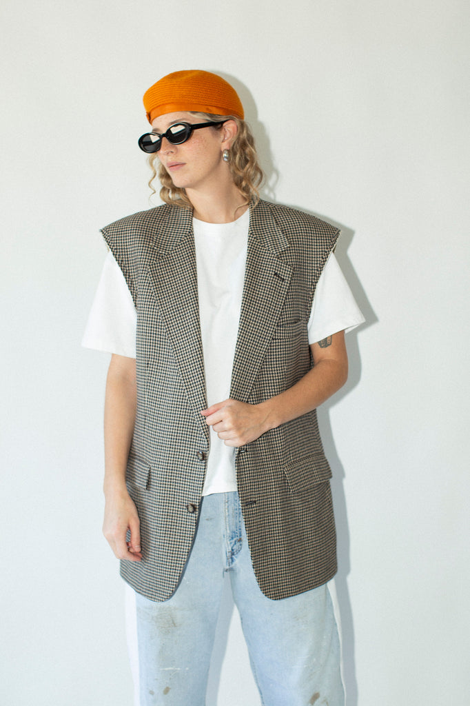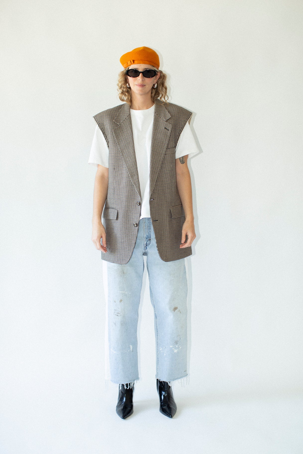 Created in collaboration with Makaila Hanley, our Deconstructed Blazer Vest is a one-of-a-kind piece transformed from hand-selected vintage men's blazers.