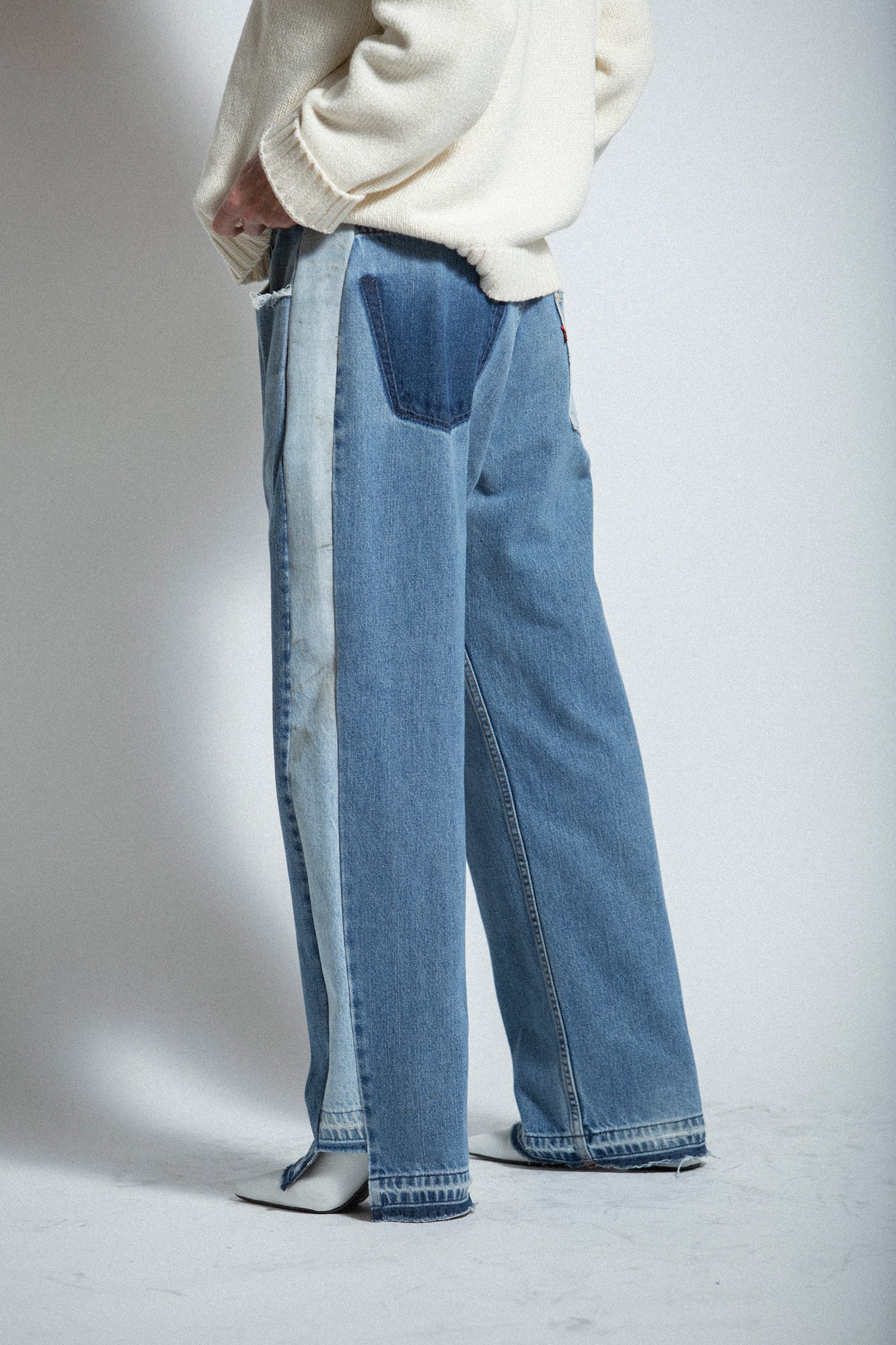 Created in collaboration with Connor Grau, our Split Hem Panel Jeans are one-of-a-kind bottoms transformed from hand-selected vintage Levi's.