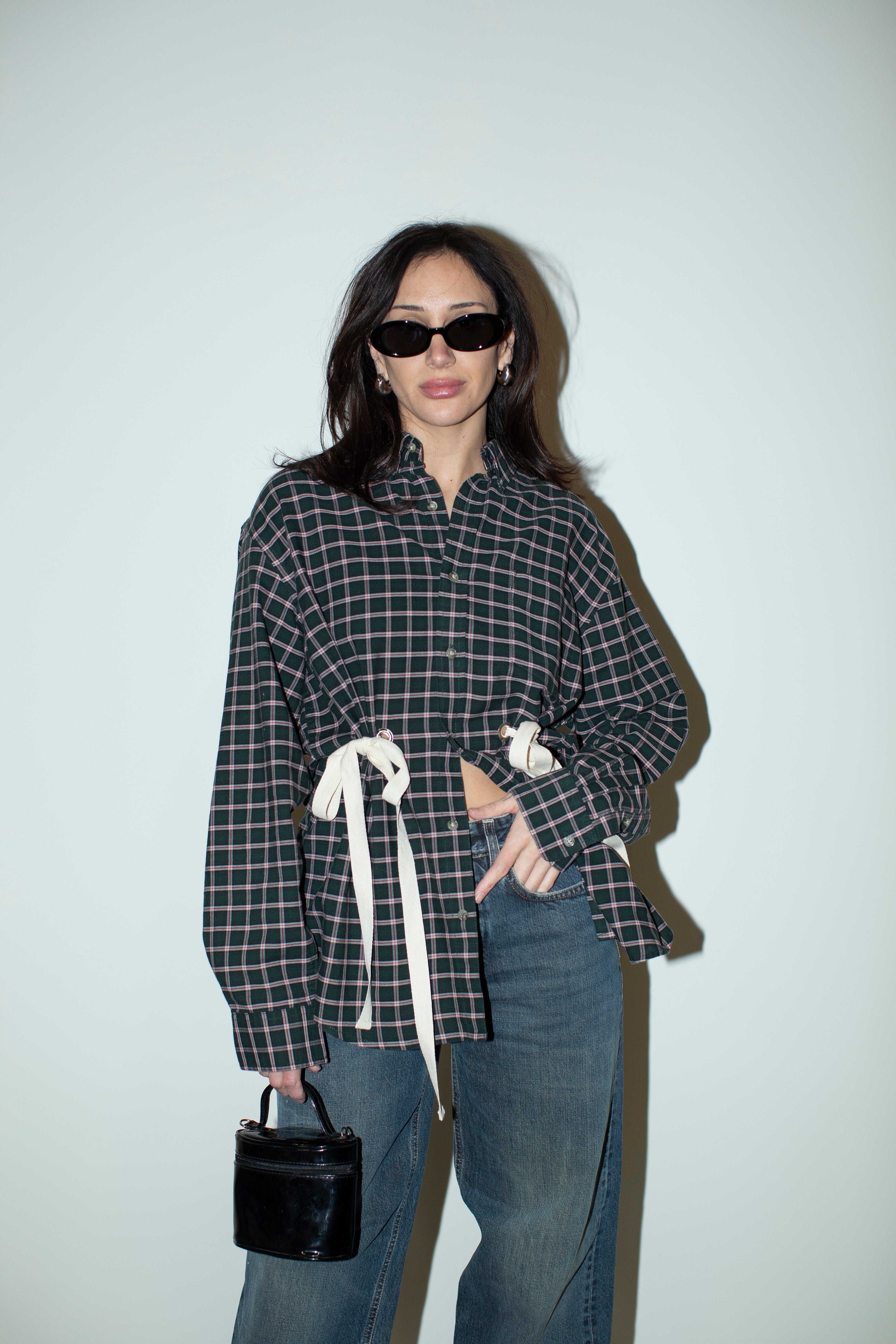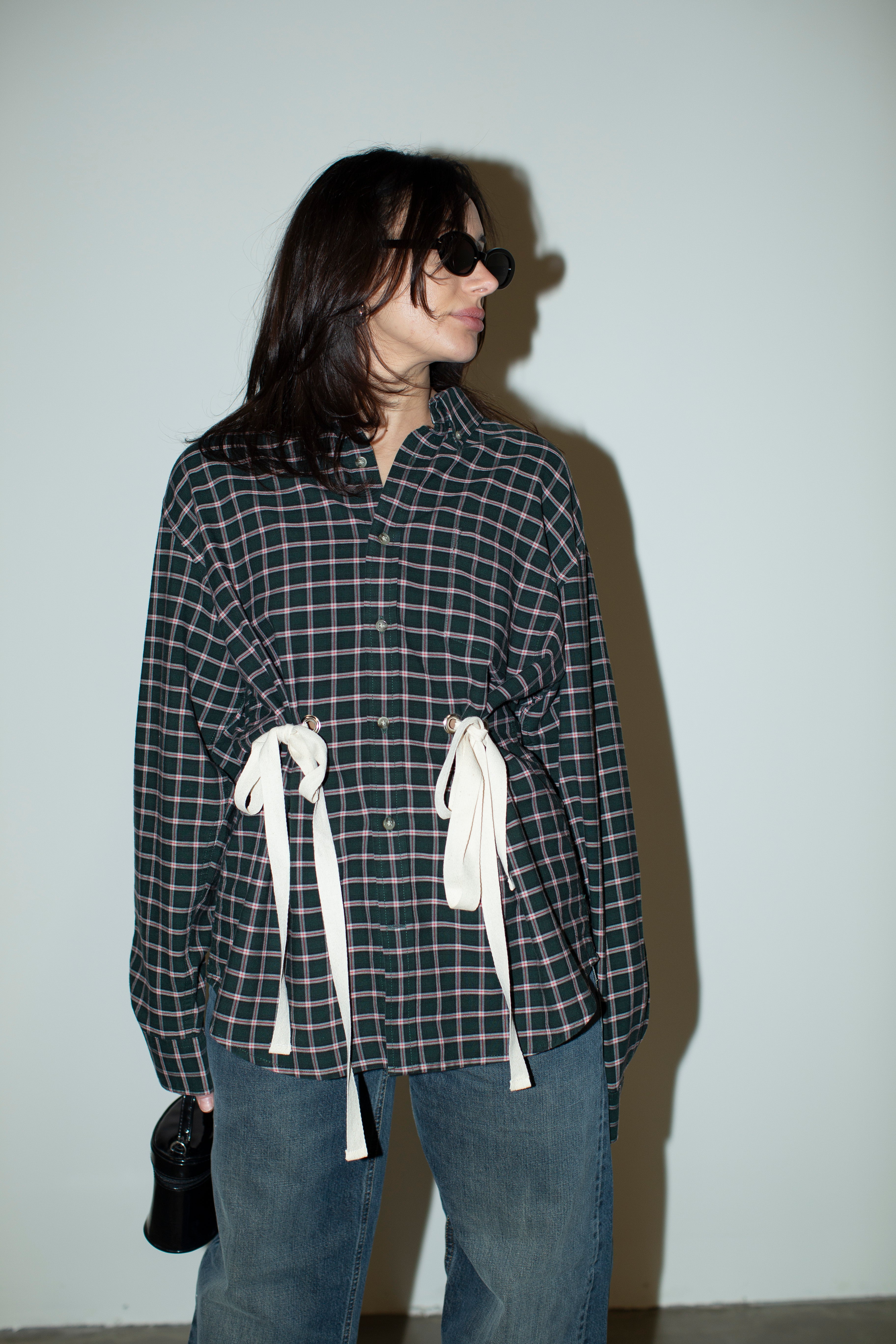 Created in collaboration with Connor Grau, our Front Tie Button-Down Shirt is a one-of-a-kind piece transformed from hand-selected vintage men's buttons downs.