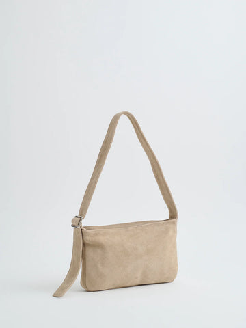 Baby version of Are Studios' best-selling Jane bag. A small, soft form shoulder bag with one adjustable flat shoulder strap. Featuring a minimal metal slider on the strap and one interior pocket. Unlined leather.