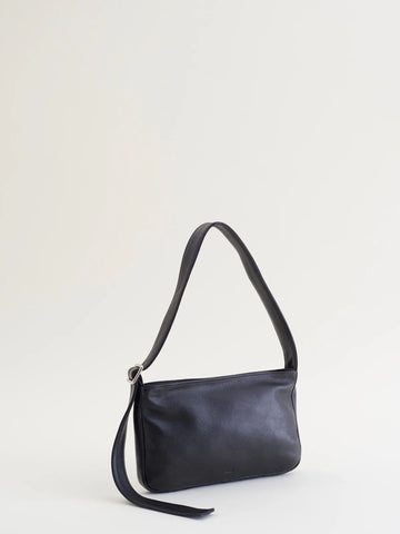 Baby version of Are Studios' best-selling Jane bag. A small, soft form shoulder bag with one adjustable flat shoulder strap. Featuring a minimal metal slider on the strap and one interior pocket. Unlined leather.