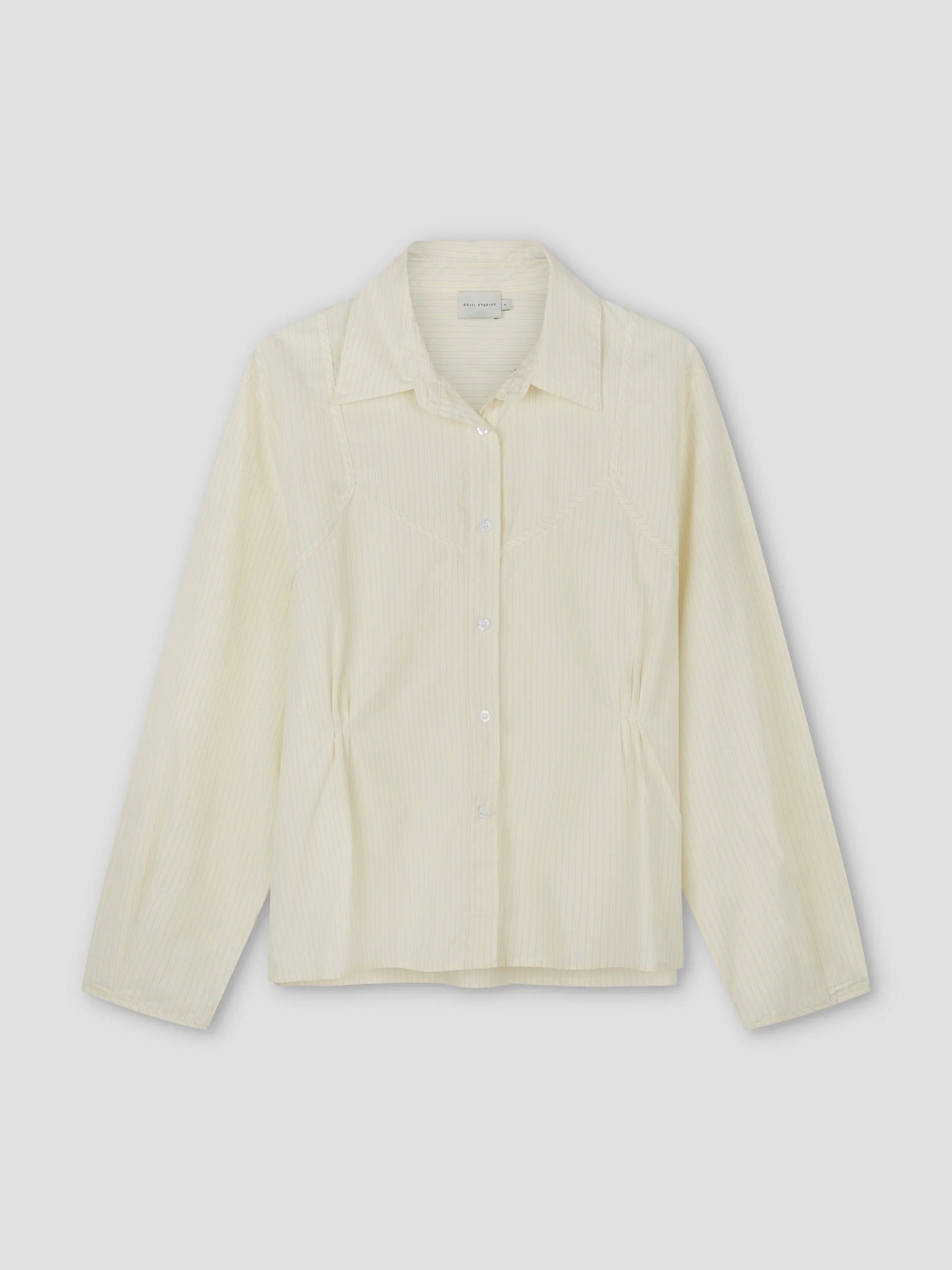 A lightweight button up shirt featuring a soft collar, relaxed long sleeves and subtle panel seam detailing throughout. Designed with a straight hem and easy, slightly boxy fit for relaxed layering or worn on its own.