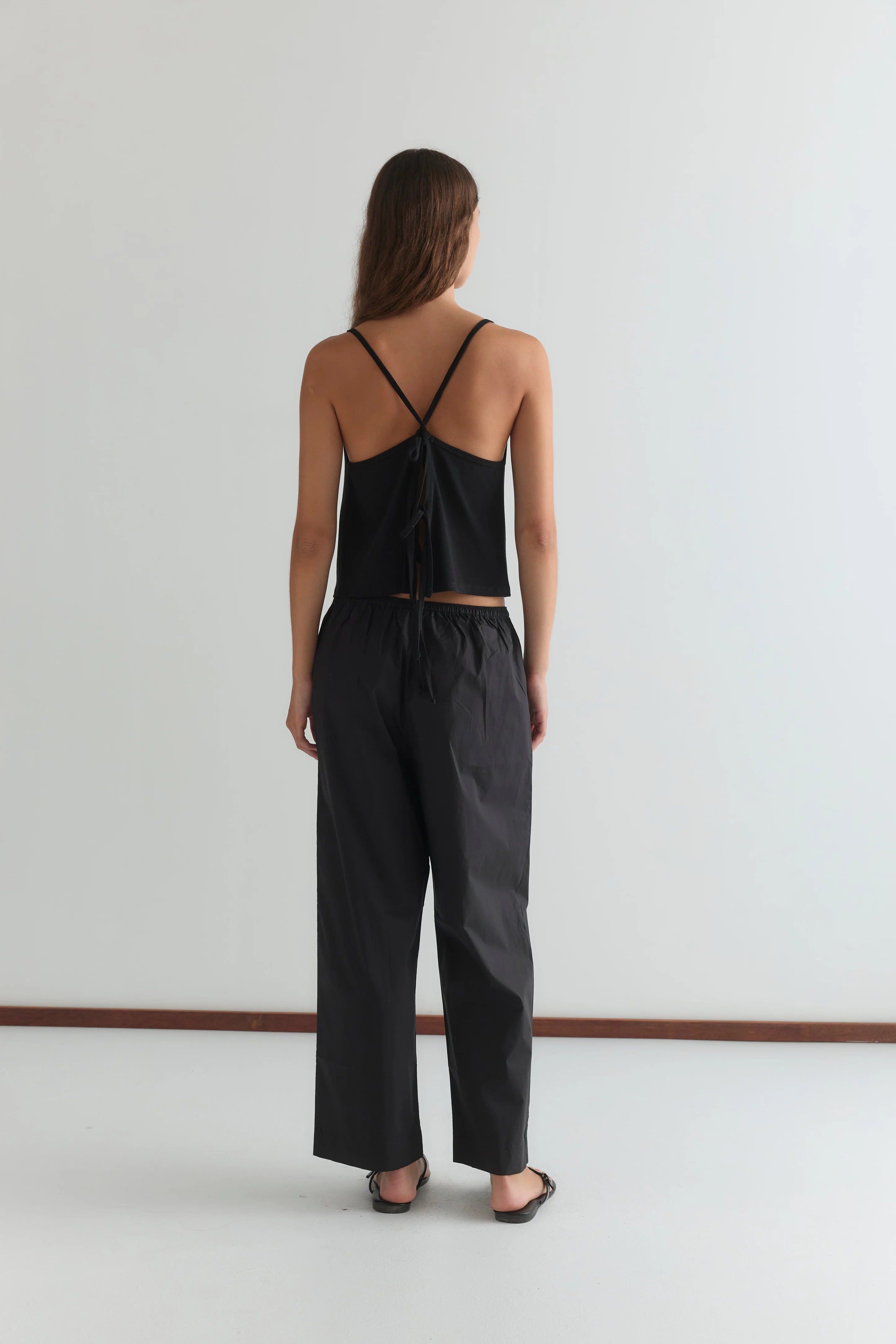 A lightweight top designed with a soft draped neckline. Features crossover straps and tie up detail at the back.