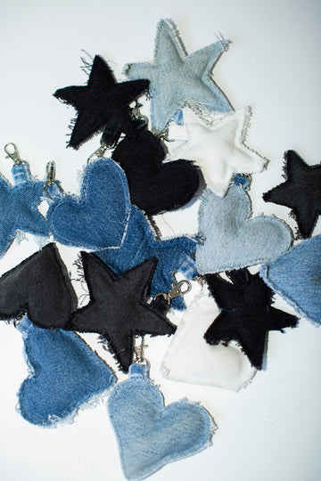 Created in collaboration with Makaila Hanley, our Denim Keychains are one-of-a-kind pieces transformed from hand-selected vintage denim scraps from previous Reworked projects.