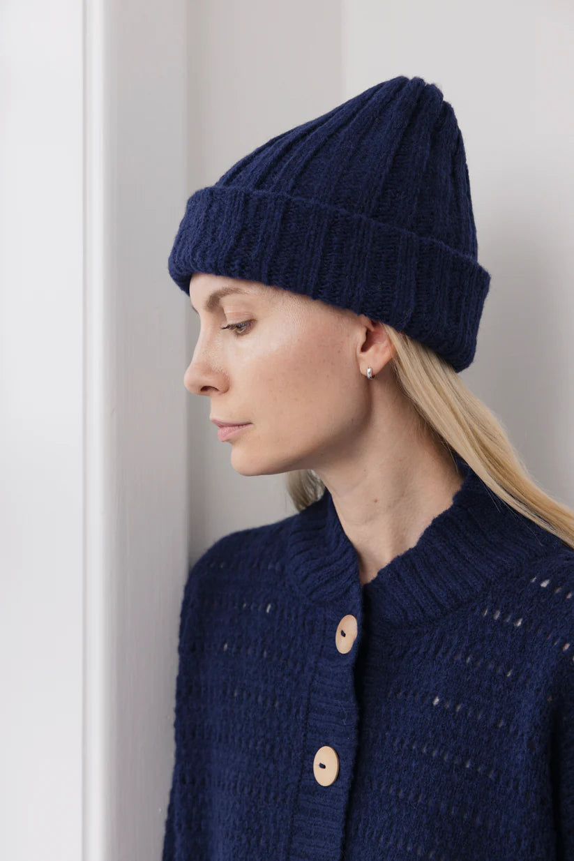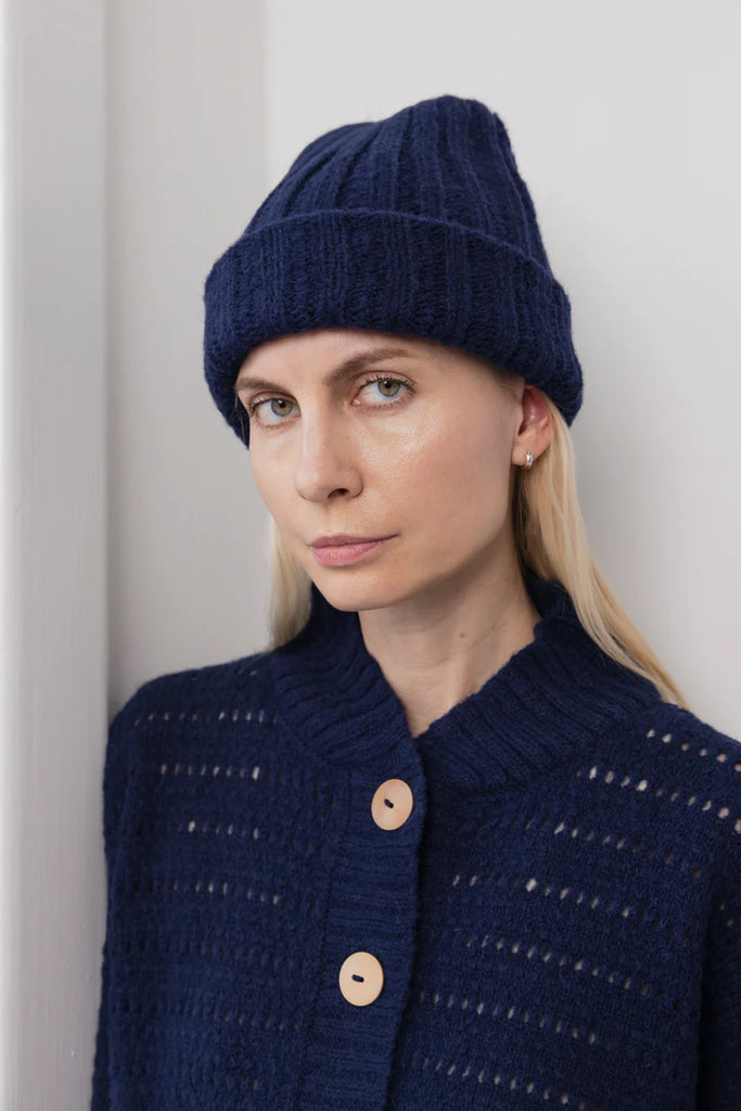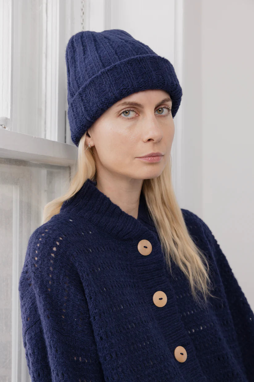 Wol Hide's bestselling hat. Double-layer rib beanie, long enough for a generous foldover cuff, making it extra warm around the ears. Knit in a 100% brushed alpaca yarn which makes it lofty, fuzzy, and super warm.