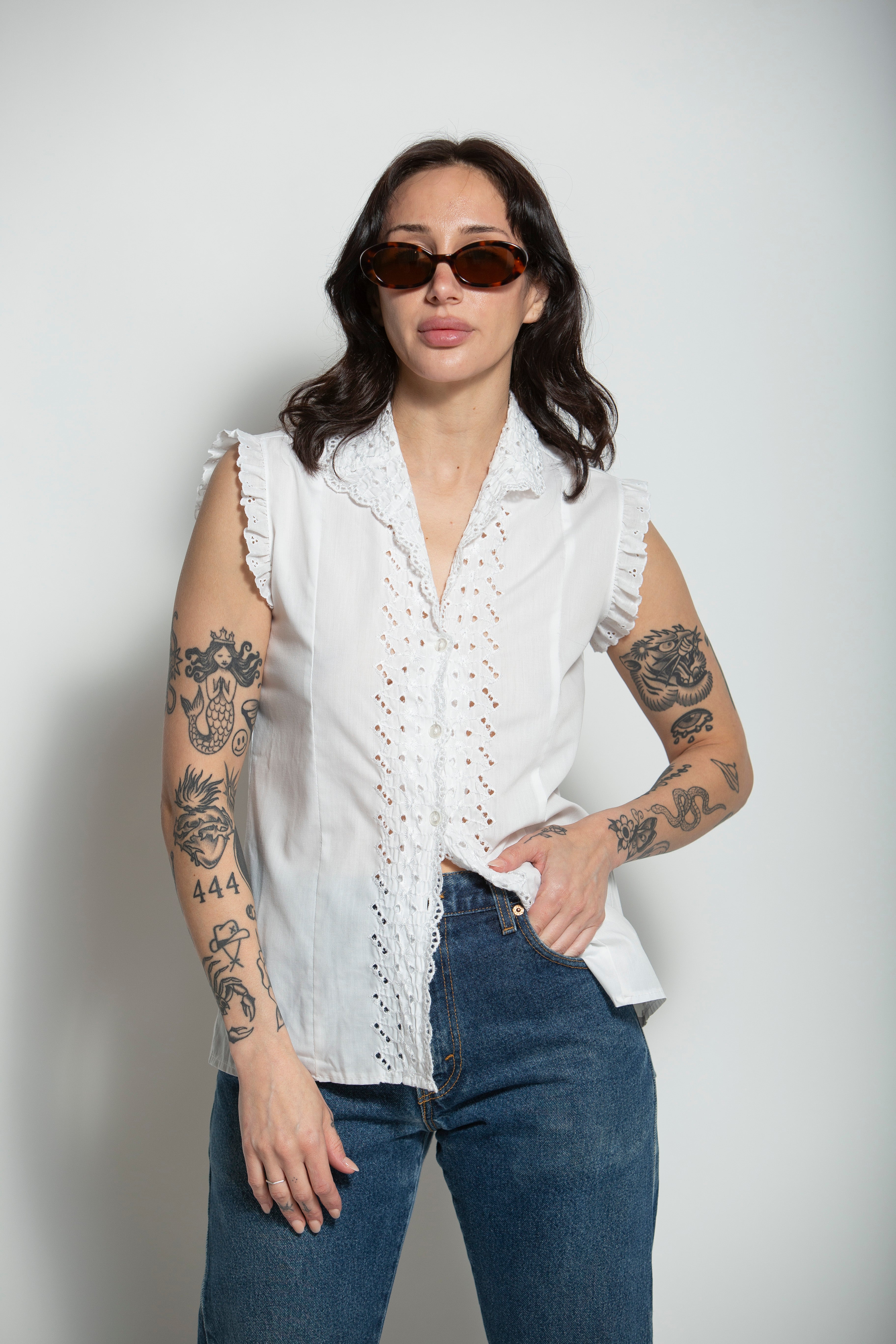- Cotton lace detail throughout